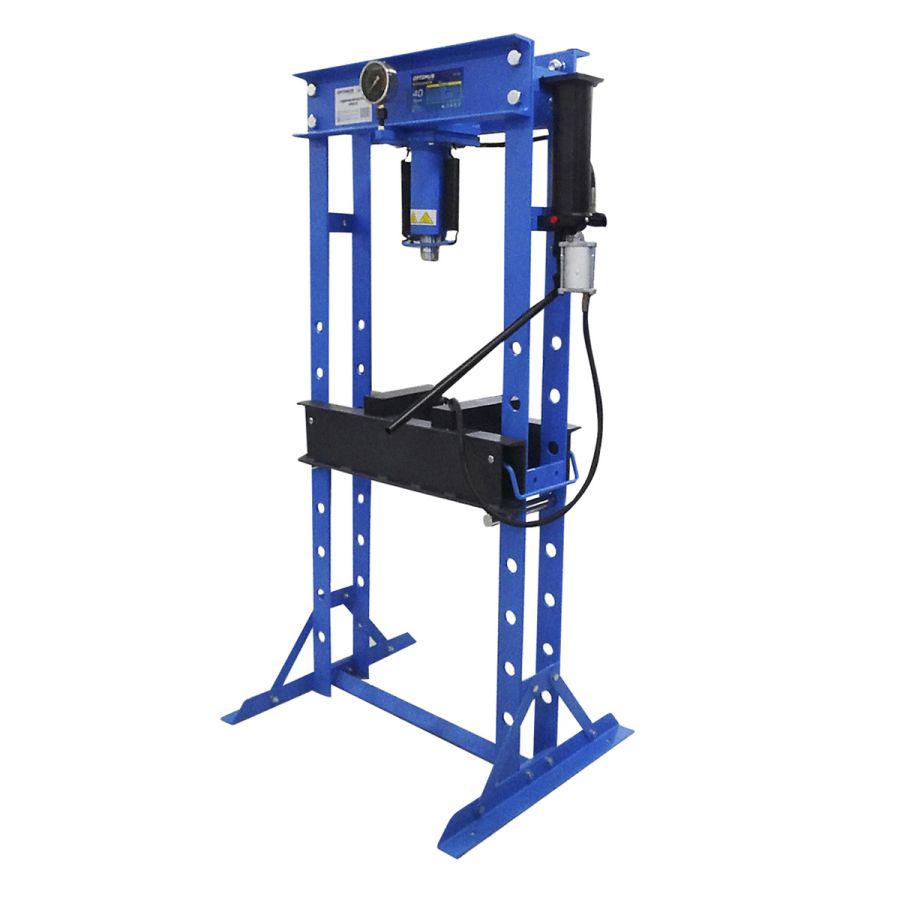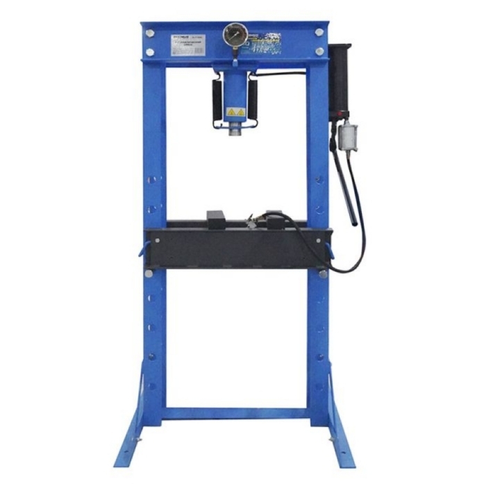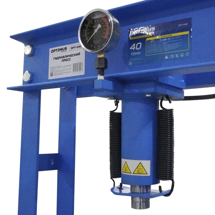 Пресс гаражный Optimus OPT-240, 40т с пневмоприводом - напольный гидравлический пресс с ручным и пневмогидравлическим приводом насоса применяется в автосервисах, СТО и производстве для запрессовки деталей различных размеров, выпрессовки втулок, снятия и установки подшипников, гибки металла. Гидравлические компоненты повышенного качества. Жидкостный манометр защищен от гидроудара, упрощает контроль за развиваемым усилием. Регулируемый по высоте стол и автоматический возврат поршня обеспечивают удобство и скорость работы.