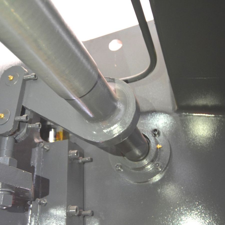 Пресс гибочный гидравлический Metal Master HPJ 32100 M - имеет жесткое (через трубчатый торсион) соединение двух силовых гидроцилиндров для синхронизации их работы. Эта схема проста, применяется многими мировыми производителями листогибочных прессов уже несколько десятков лет и является недорогим и надежным средством для обеспечения точности работы станка.
