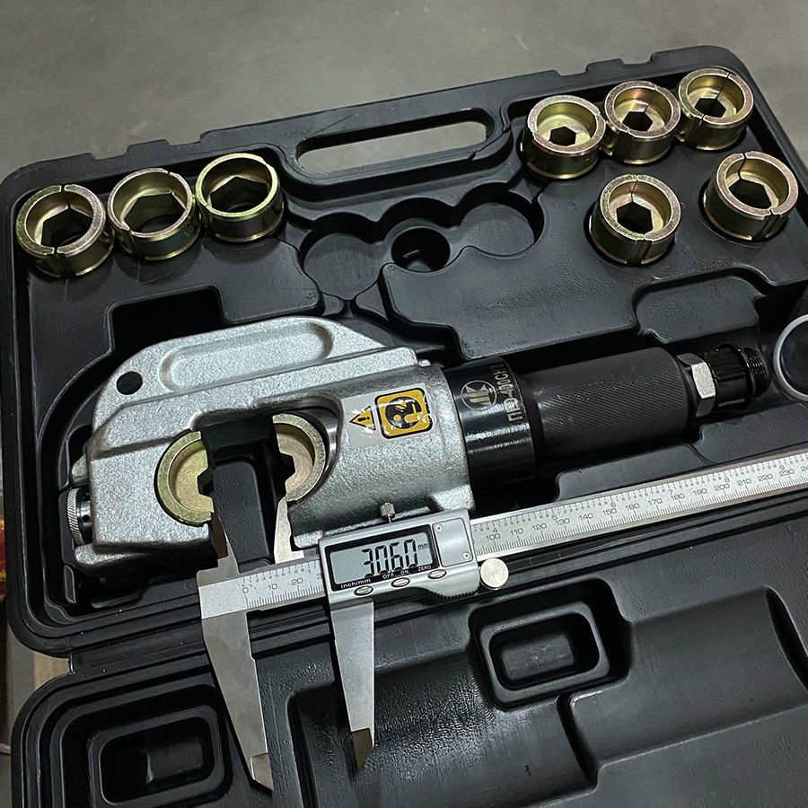 Пресс гидравлический ПГО-400СН2 без насоса с усилием в 25 тонн, ход штока 32мм. Пресс гидравлический электромонтажный ПГО-400СН2 предназначен для опрессовки кабельных наконечников и гильз в местах соединения электрических кабелей (как с алюминиевыми, так и с медными жилами). Опрессовка производится гексагональным (шестигранным) методом. В качестве привода пресса можно использовать любой ручной/ножной гидравлический насос с давлением до 70 МПа или электрические маслостанции одностороннего действия с ручным или электромагнитным управлением. Насос не входит в комплект поставки.