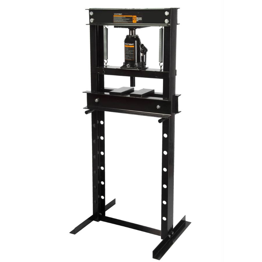 Пресс гидравлический WIEDERKRAFT WDK-80121, 20т бутылочный домкрат приводится в действие при помощи рукояти. Устойчивое положение модели обеспечивается благодаря поперечным пластинам основания. Отверстия стоек позволяют с легкостью менять высоту стола (рабочий диапазон составляет 0-910 мм). Для контроля давления конструкция пресса предусматривает наличие манометра. Ход штока - 160 мм.