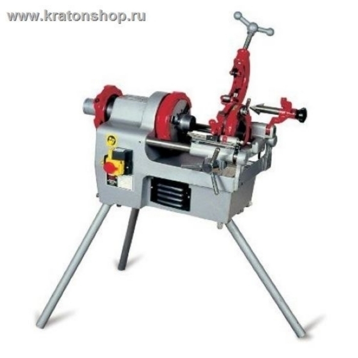 Поставляется с комплектом плашек. Компактный станок предназначен для нарезки резьбы на концах труб. Благодаря небольшому весу 74 кг станок широко используется не только в мастерских но и на строительных площадках. Станок позволяет не только нарезать как трубную (от1/2" до 2"), так и метрическую резьбу (от М8 до М24), но производить зенковку и отрезку обрабатываемых деталей. Станок оснащён электродвигателем мощностью 750 Ватт / 220 Вольт имеет левое и правое вращение и систему подачи масла для охлаждения заготовки. Станок зарекомендовал себя с лучшей стороны, он надёжен и прост в работе.