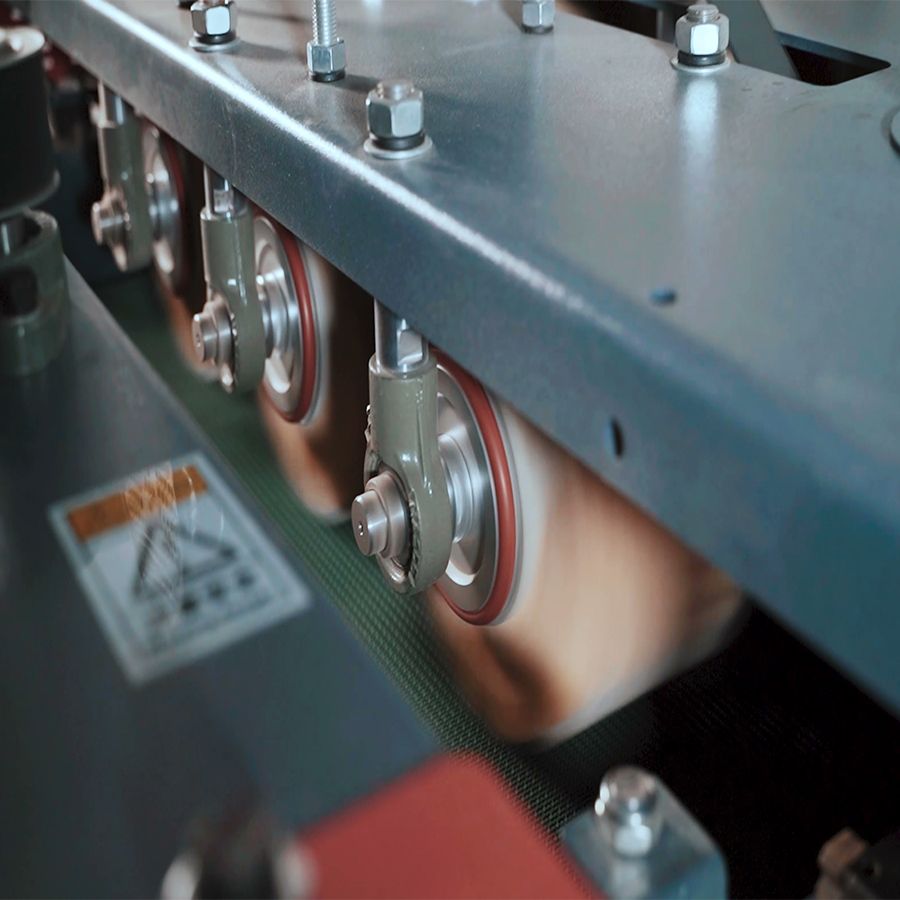 - Сдвоенная система прижима заготовок позволяет надежно фиксировать заготовки в двух точках. Оснащены электрорегулировкой подъема/опускания, что, в сочетании с сегментными эластичными роликами, обеспечивает точный и деликатный прижим заготовки.