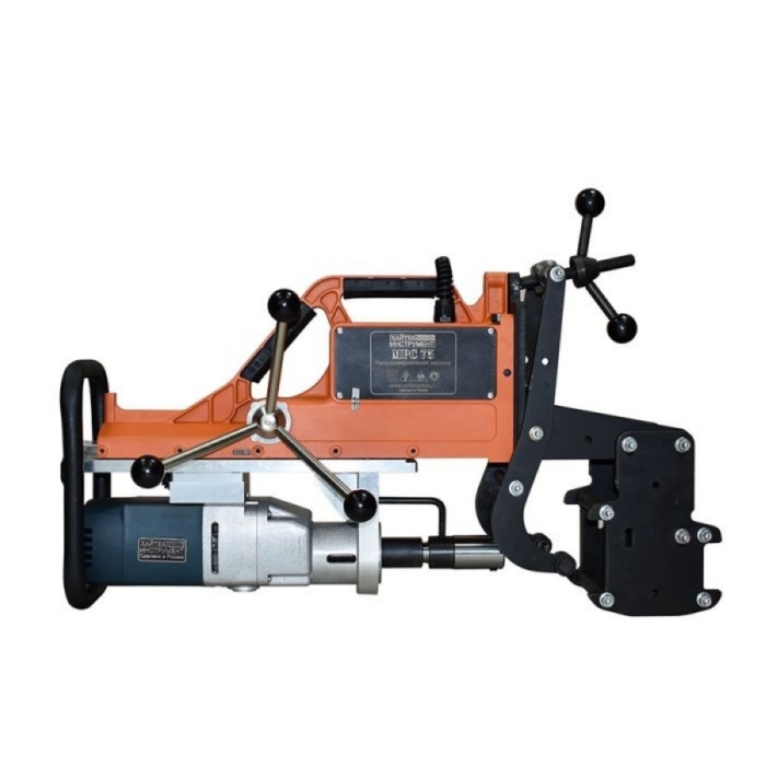 В отличие от бензиновых, станок МРС-75 не выделяет выхлопных газов при работе и идеален в применении в тоннелях и замкнутых пространствах. Для удобства переноски и установки на рельс, станок оборудован тремя рукоятками с резиновыми накладками.