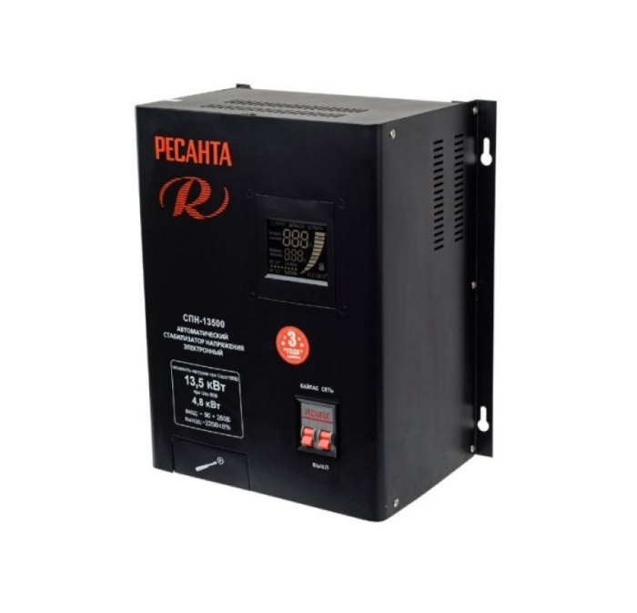 Стабилизатор Ресанта СПН 13500 предназначен для защиты электроники, цифровой и оргтехники, а также бытовых электроприборов от перепадов напряжения в сети. Прибор имеет мощность 13500 Вт, что позволяет использовать его в частном доме, квартире или офисном помещении. Цифровой дисплей позволяет осуществлять визуальный контроль работы прибора. Удобные крепления и не большие габаритные размеры дают возможность разместить стабилизатор в любом удобном месте.