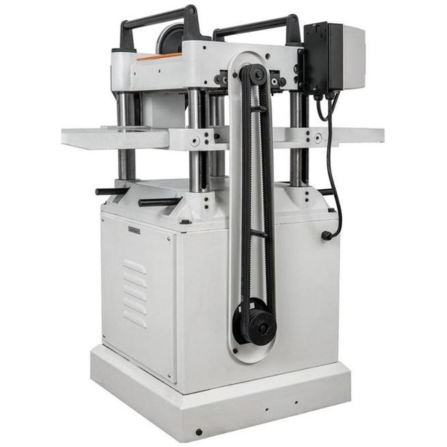 Рейсмусовый станок Jet JWP-15K HH — профессиональный рейсмусовый станок со строгальным валом helical, имеющий прочную и массивную конструкцию. Подходит для интенсивной эксплуатации, для частой работы с твердыми и свилеватыми породами, обеспечивает высокое качество строгания, характерное для станков с технологией helical. Твердосплавные лезвия с радиусной кромкой расположены в несколько спиральных рядов и заходят в породу последовательно, а не по всей ширине сразу. Благодаря этому снижаются вибрации, шум, образуется менее крупная и более плотная стружка, отсутствует дефект поверхности в виде «стиральной доски». Обслуживание такого барабана проще: изношенные сегменты переворачивают (у них по четыре режущих кромки) или меняют, но не все сразу, а по мере необходимости. Никакой настройки после этого не требуется. Доступ к узлу максимально удобен за счет нижнего (в тумбе) расположения двигателя.