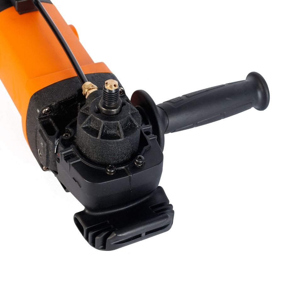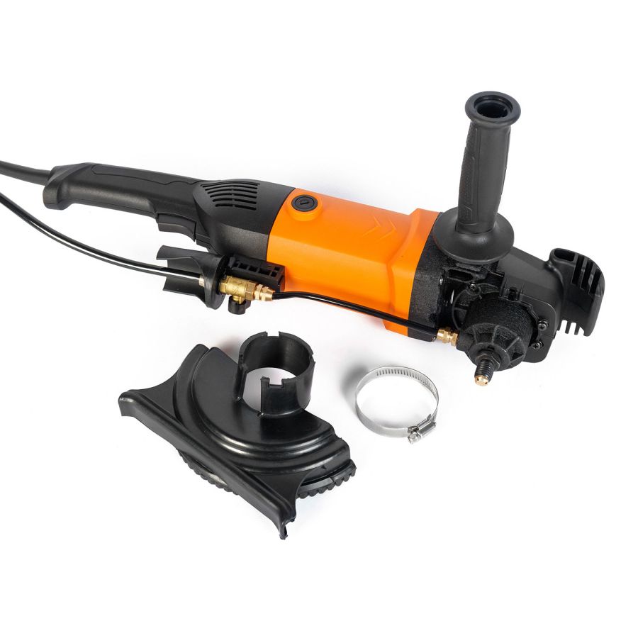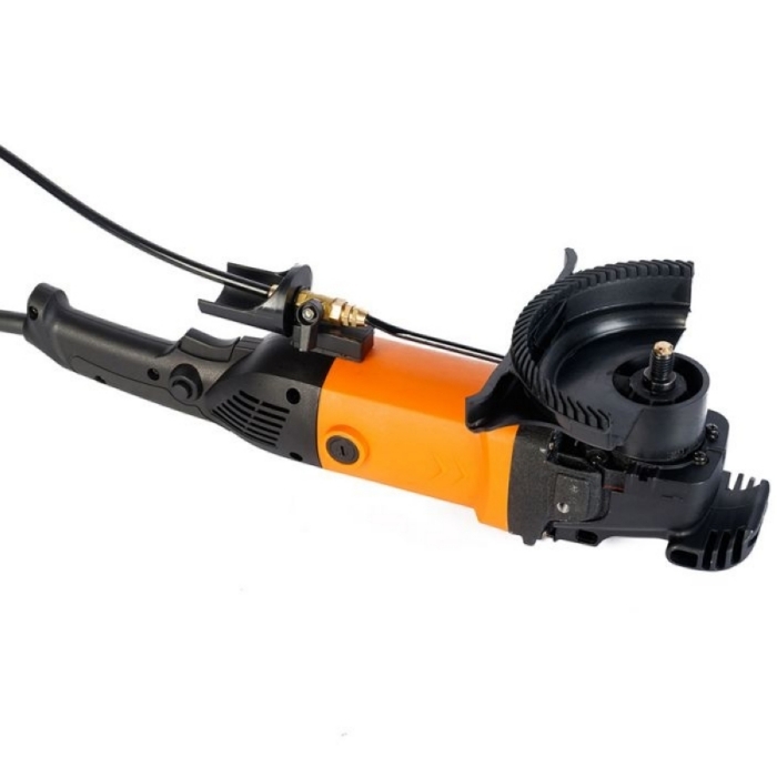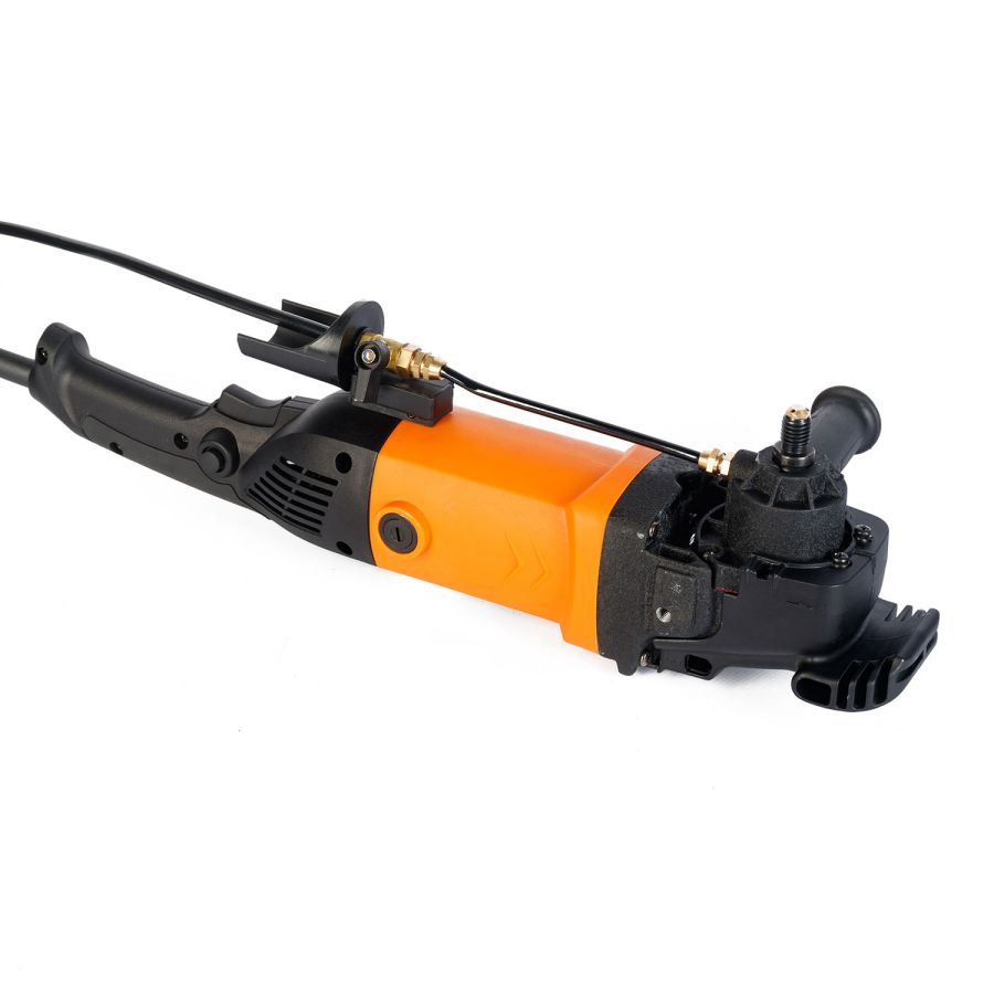 Ручная шлифовальная машина Tech-Nick 180MM BRO - с регулировкой скоростей и системой подачи воды. Вода должна подаваться в нужном количестве, не больше и не меньше (индивидуально для каждой УШМ с регулировкой оборотов). Иначе может произойти замыкание или инструмент будет слишком сильно нагреваться.