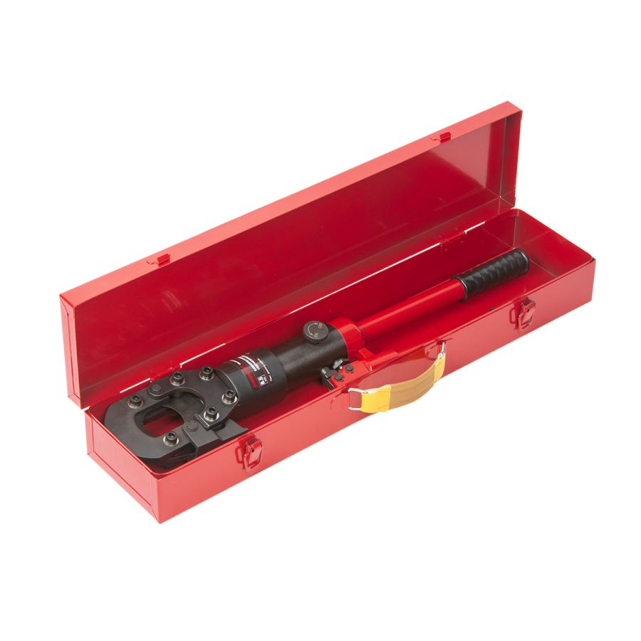 Артикул HRH-CA03050080 Усилие, т 8.5 Диапазон резки, мм 50 (Cu; Al / армированный кабель) Габариты упаковки, мм 860х200х100 Вес, кг 11,4 Ручной кабелерез гидравлический Harrison HRH-CA03050080 со встроенным насосом применяются для резки алюминиевых и медных силовых кабелей различных диаметров, в том числе кабелей с ленточной стальной броней, а также кабелей связи. Гидравлический привод обеспечивает высокую мощность и эффективность при выполнении работ по обрезке кабелей. Гидравлические кабелерезы с встроенным насосом являются незаменимым инструментом для профессиональных электриков, строителей, техников по обслуживанию сетей связи и других специалистов, занимающихся монтажом и обслуживанием кабельных соединений. Комплектация: