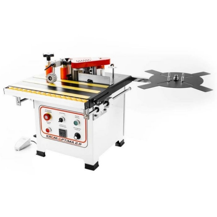 KROM OPTIMA 2.0 станок работает от сети в 220V, а значит легко подключить в любом месте. Укомплектован гильотиной для работы с бобиной кромки. Два клеевых вала обеспечивают одновременное нанесение клея как на кромку, так и на деталь. Отлично держит настройки, легко чистить и обслуживать. Расширенная гарантия 18 месяцев. Прекрасная альтернатива полноразмерным стационарным станкам за меньшие деньги.