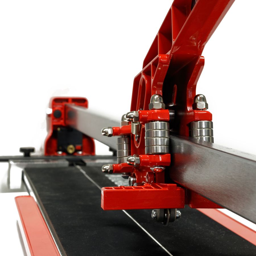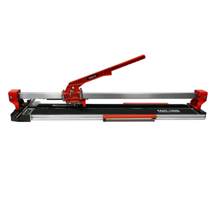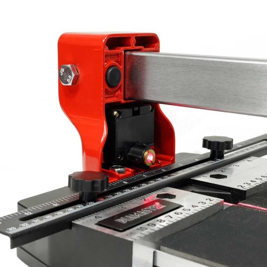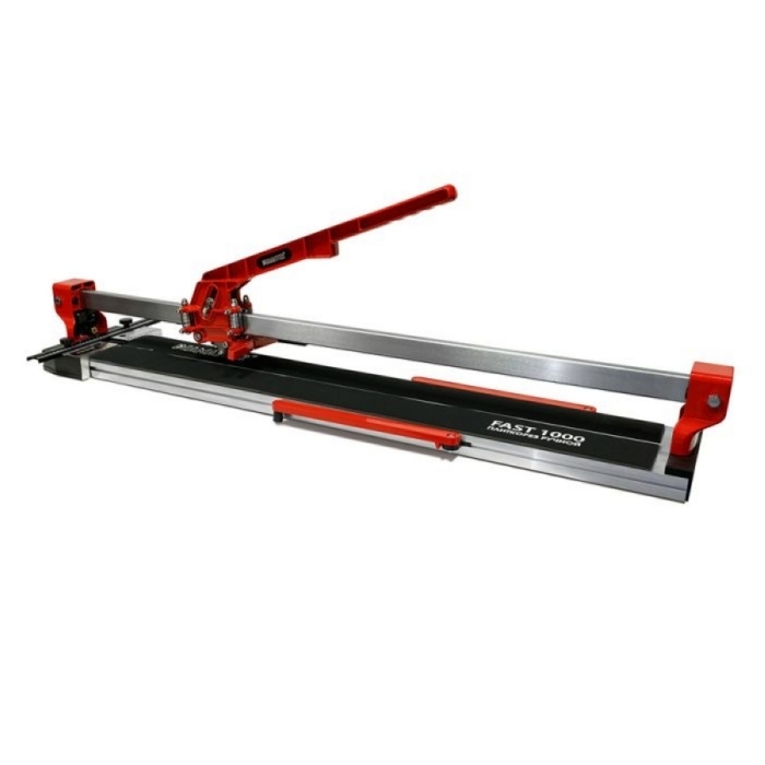 Плиткорез Fast 100 Diamaster с лазерным указателем это профессиональный плиткорез может выполнять прямой рез заготовок длиною 1000 мм., изготовленных из керамики или керамогранита. Классический монорельс гарантирует жесткость и надежность конструкции. Каретка плиткореза оборудована шестнадцатью подшипниками. Восемь из них регулируются, что позволяет достичь оптимального скольжения и максимальной точности. Для удобства работы на станке есть лазерный указатель реза (две батарейки тип "ААА" не поставляются в комплекте) и дополнительные расширители рабочей поверхности.