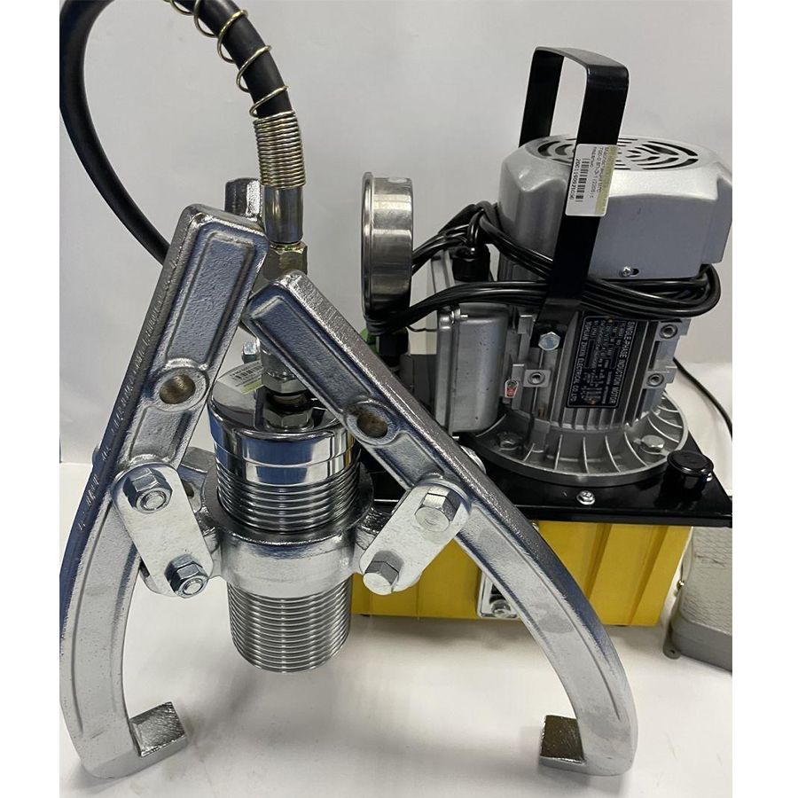 Съемник гидравлический с двухступенчатым насосом СГ-100Н (МГС700-0.8П-Э-1) - предназначен для демонтажа подшипников, зубчатых колес, шкивов, ступиц и других, установленных с натягом деталей с валов. В качестве привода используется маслостанция гидравлическая МГС 700-0.8П-Э-1 , которая служит для различного гидравлического переносного и стационарного оборудования: домкратов, гидравлических трубогибов, шиногибов, опрессовщиков стропов, гидроцилиндров одностороннего действия, прессов и других гидравлических устройств.