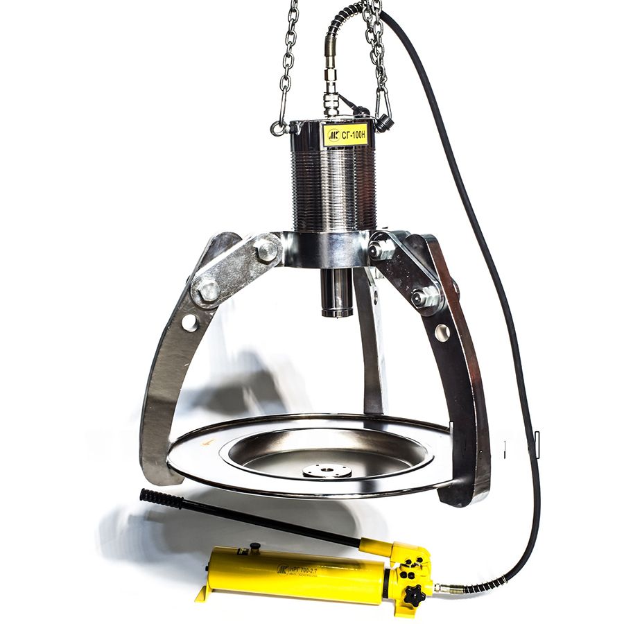 Гидравлический съемник СГ-100Н без насоса предназначен для демонтажа подшипников, зубчатых колес, шкивов, ступиц и других, установленных с натягом деталей с валов. Цена указана за съемник без учета насоса. В качестве привода используется ручной или электрический гидравлический насос одностороннего действия с рабочим давлением 700 бар (70МПа). Рабочий объем гидравлического насоса должен быть не менее 1.4 литра.