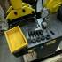 Ручной распределитель имеет пять положений. Крайнее левое, крайнее правое и среднее - для работы с одним из трех инструментов, а два промежуточных положения - для сброса давления (для возврата штока). От распределителя идут три РВД с быстроразъемными соединениями (БРС) на конце, для подключения инструментов. На столе рядом с распределителем установлен манометр для контроля рабочего давления.