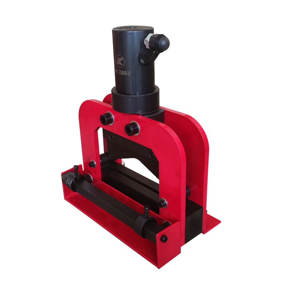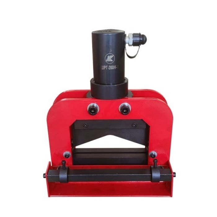 Гидравлический шинорез ШРГ-200Н-V состоит из сварного основания, неподвижного нижнего ножа, гидроцилиндра с закрепленным на штоке подвижным верхним V-образным ножом. На основании шинореза имеется линейка для позиционирования шины и два подвижных упора для настройки ширины отрезаемой шины. Гидроцилиндр одностороннего действия с пружинным возвратом штока может работать совместно с гидравлическим насосом с давлением до 700 бар. С шинорезом возможно использовать ручной гидравлический насос или маслостанцию с педалью.