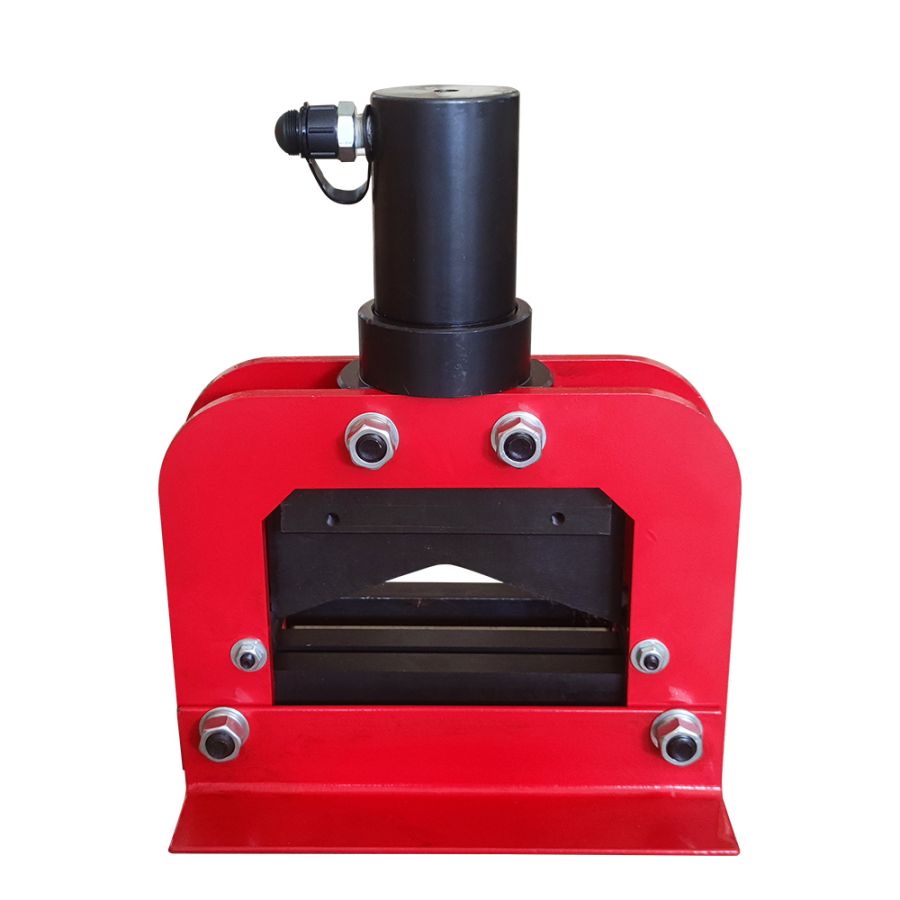 3. После возврата штока разместите шину в рабочем пространстве максимально близко к оси гидроцилиндра и зафиксируйте подвижные упоры по бокам шины. Произведите рез шины, сбросьте давление в системе. Подвижный нож под действием пружины вернется в исходное верхнее положение.