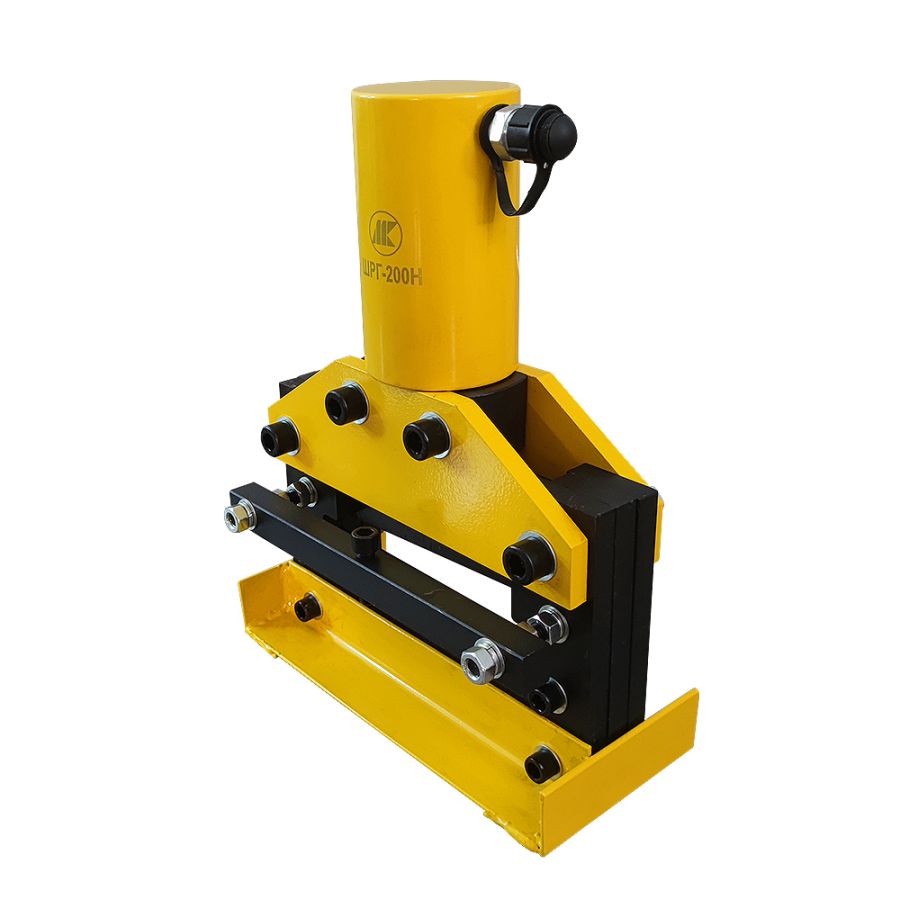 Гидравлический шинорез ШРГ-200Н состоит из сварного основания, неподвижного нижнего ножа, гидроцилиндра с закрепленным на штоке подвижным верхним ножом. На нижнем ноже шинореза установлен упор с регулировочным винтом для настройки толщины отрезаемой шины. Гидроцилиндр одностороннего действия с пружинным возвратом штока может работать совместно с гидравлическим насосом с давлением до 700бар. С шинорезом возможно использовать ручной гидравлический насос или маслостанцию с педалью.