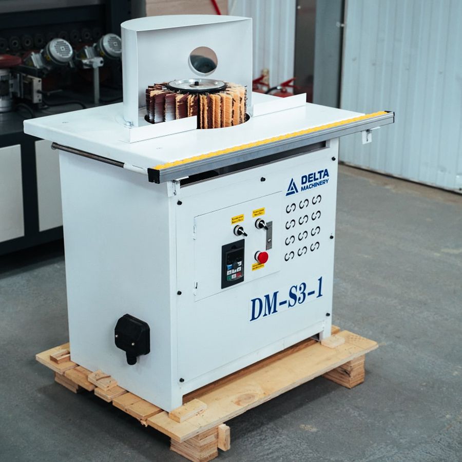 Шлифовально-щеточный станок DELTAMACHINERY DM-S3-1 с одним барабаном предназначен для шлифования торцов фасадов и дверных полотен, а также профильных, криволинейных изделий из массива и МДФ. Декоративных элементов мебели, багетов, карнизов, изделий с мелкими и глубокими фрезеровками, опор столов и стульев.