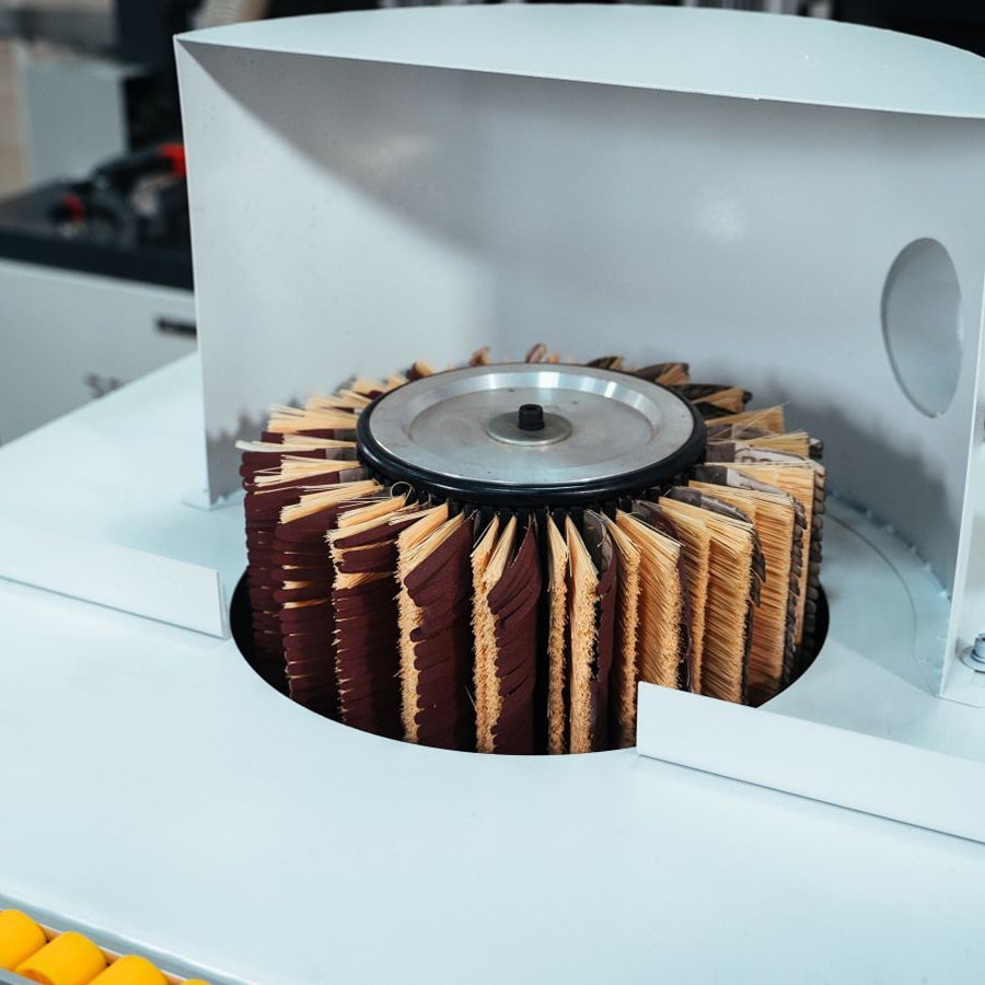 - Станок оснащен одним вертикальным барабаном, который перемещается вверх\вниз, так называемый механизм осциляции. Простая и удобная смена абразивных вкладышей и поддерживающих сизалевых щеток.