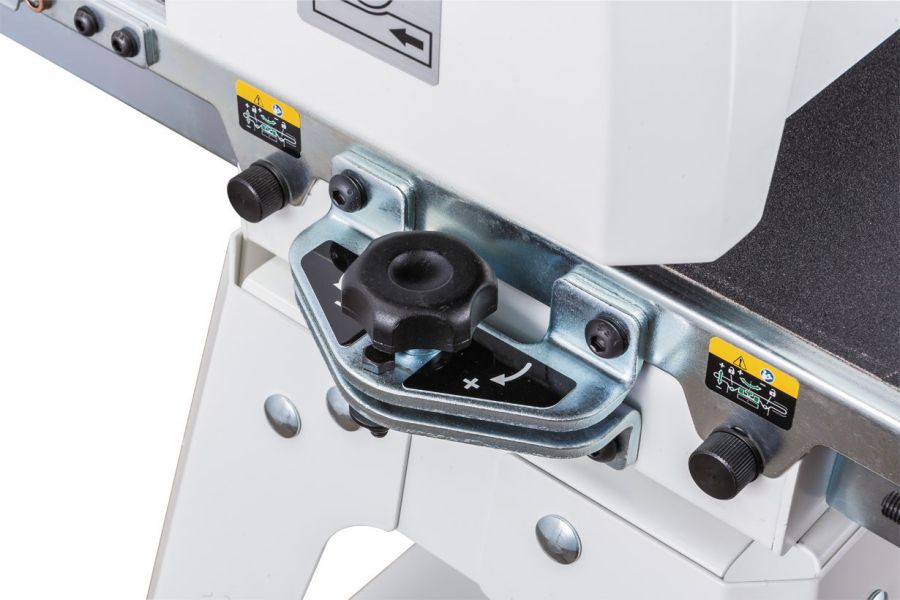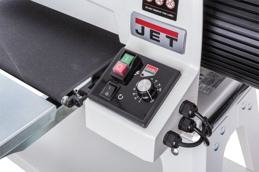 Привод транспортерной ленты оснащен плавной регулировкой скорости с электронной системой SandSmart, которая производит корректировку установленного значения в зависимости от величины нагрузки на двигатель. Если она достигнет критического значения (например, толщина заготовки увеличилась) скорость конвейера автоматически уменьшится, а позже, как только условия это позволят, автоматически вернется на прежний уровень.