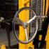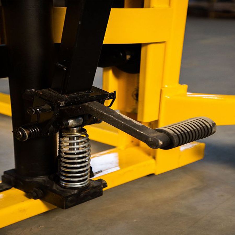 - Ножной тормоз на поворотных колесах надежно фиксирует штабелёр на месте, обеспечивая безопасность работы