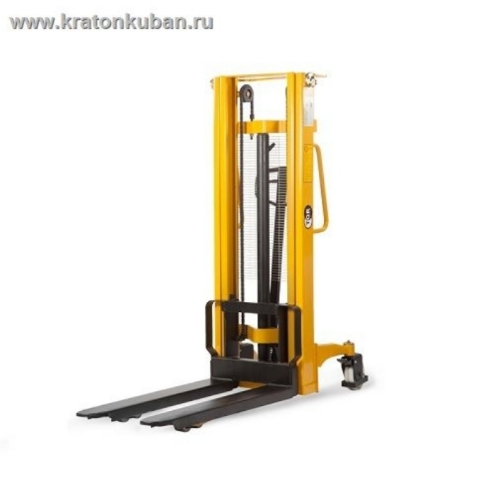 Подъем осуществляется при помощи ручного рычага или ножной педали, опускание груза с помощью нажатия планки переключения режимов на рукоятке управления. Горизонтальное перемещение штабелера производится в ручном режиме. В зависимости от высоты подъема может оснащаться мачтами с одной или двумя секциями.