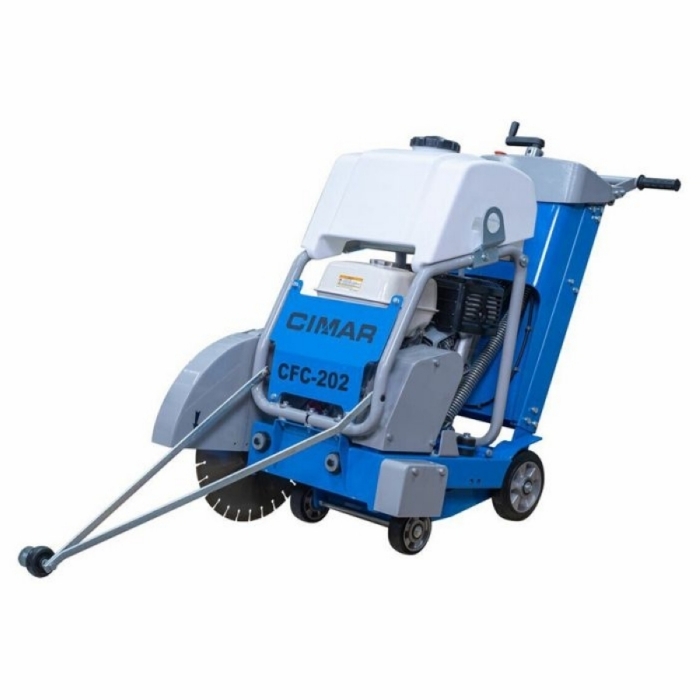 Швонарезчик Cimar CFC-202, Honda GX390 бензиновый - подходит для дорожных покрытий, а также для монтажа линий в бетонных полах. Предельная грубина пропила составляет 185 мм. Для этого оператору понадобится профессиональный алмазный диск диаметром 500 мм с силовым каркасом и посадкой 25,4 мм.