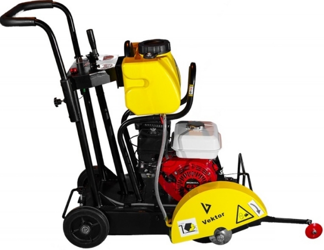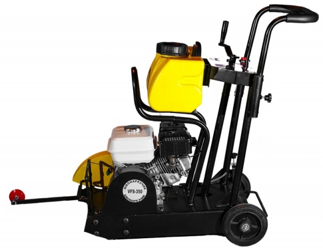 Швонарезчик Vektor VFS-350 - применяется для прорезания швов глубиной до 110 мм в асфальте, бетоне и других строительных материалах и дорожных покрытиях. Резчик швов сконструирован на базе мощного бензинового двигателя Honda GX-160.