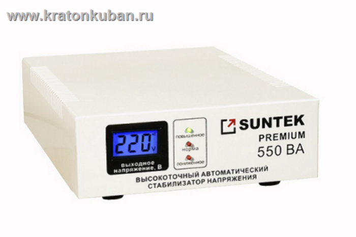 Стабилизатор напряжения Suntek ЭМ550 ВА создан для использования с требовательными приборами (котлы, компьютеры, телевизоры). ЖК-табло с точностью до 1 Вольта сообщит Вам о ситуации в сети. Работает в сети 220 Вольт, а также в сети 110 Вольт. Возможность подключения как приборов на 220 Вольт, так и 110 Вольт позволяет использовать его взамен трансформатора 220/110 Вольт. А стабилизация двух напряжений – уникальность данного стабилизатора.