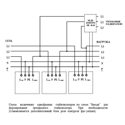 Трехфазный стабилизатор напряжения выполняет следующие дополнительные функции: