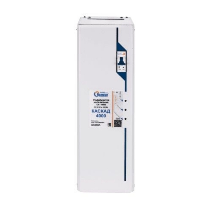 Стабилизатор электромеханический Каскад СН-4000 - обеспечивает поддержание выходного напряжения 220 В +/- 2,5% при изменении входного в диапазоне согласно техническим характеристикам изделия.
