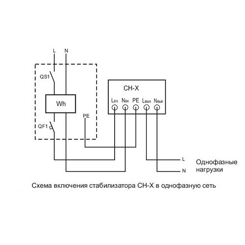 Изделие выполнено в виде блока, который может быть установлен на полу или закреплен на стене при помощи кронштейна. Для однофазной сети используется один стабилизатор, для трехфазной сети необходимо три стабилизатора, включенных по схеме «звезда».