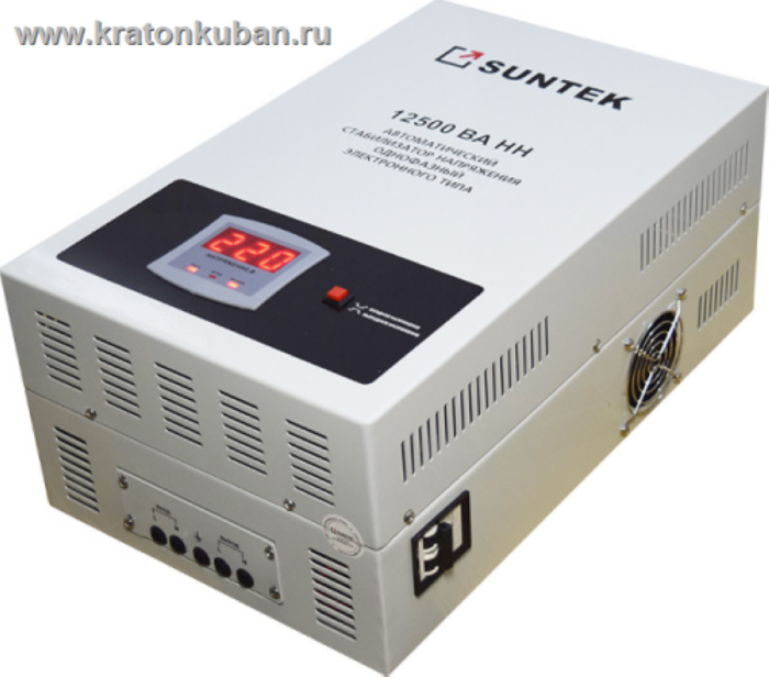 Стабилизатор напряжения пониженного напряжения Suntek-НН 12500 ВА - оптимальный выбор при поиске надежного качественного стабилизатора, способного из 100-а Вольт сделать 220 Вольт. Установить данную модель можно на весь дом (суммарная нагрузка не должна превышать 12 кВт), подключив бытовую или придомовую технику и техническое оборудование (насосные станции, септики, обогреватели). Стабилизаторы серии НН можно использовать на производстве, в автомастерских, фермерских хозяйствах в качестве поставщика надежного электричества с показателем напряжения 220 Вольт.