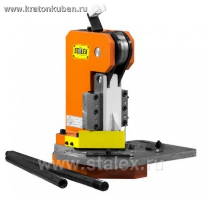 Вырубные ножницы Stalex HN-3/102 - предназначены для вырубки в листовом металле сегментов с углом 90 град. Точность работ обеспечивается регулируемыми упорами со шкалой. Оптимально подобранная длина рукоятки и эксцентриковый передаточный механизм позволяют развивать значительное усилие на штоке. Широкая станина придает устойчивость станка при работе