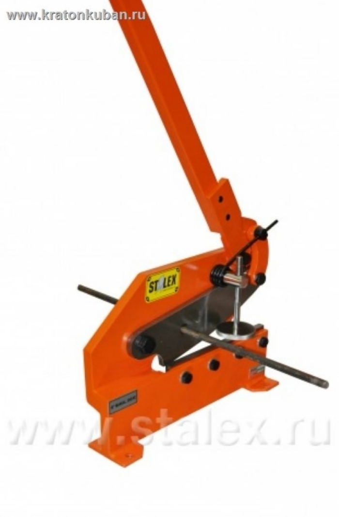 Вырубные ножницы Stalex HS-10 - прочный универсальный резчик для листовой, полосовой стали, а так же круглого прутка. Станок способен резать круглые заготовки диаметром до 13 мм, листовая сталь толщиной до 6 мм и полосы размером до 70х6 мм. Ножницы оснащены прочным прижимом, регулируемым по высоте и высококачественными режущими ножами.