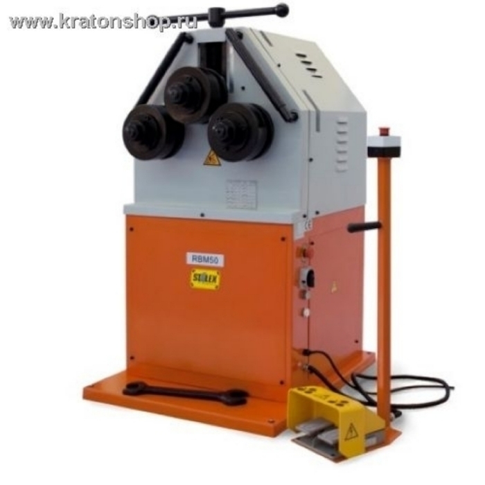 STALEX RBM-50 - служит для гибки металлических прутков, полос, швеллеров и профилей. Выносной ножной пульт управления оборудован транспортировочной рукояткой и аварийной кнопкой, позволяющей в случае экстренных ситуаций быстро остановить работу установки. Опорная плита спереди имеет небольшой выступ, который отлично подходит для временного хранения инструмента, необходимого в работе.