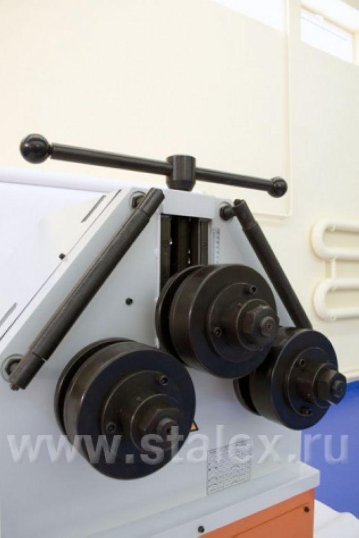 Особенности: для гибки профильных труб, полосы, прутка; упаковка (фанерный ящик) 1000х820х1550 мм; мощная стальная сварная рама; передвижная панель управления; вдоль перемещения верхнего ролика на станке установлена шкала повторяемости; датчик системы давления; ролики имеют возможность регулировки ширины.
