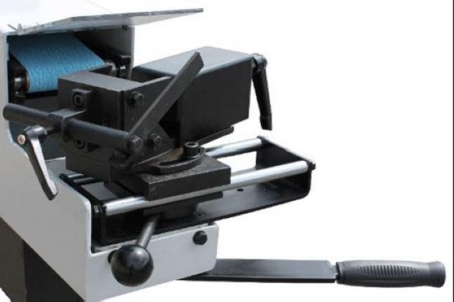 Два режима скорости 15 м/сек и 30 м/сек, передняя часть станка оснащена поворотными/подвижными тисками для обработки заготовок под углом и защитным экраном, задняя часть станка оснащена столом для упора заготовок под различными углами.