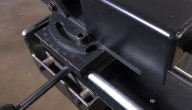 - Тиски для обработки торцов труб имеют два рычага для смещения заготовки к ленте и вправо/влево + упор для получения одинаковых изделий;