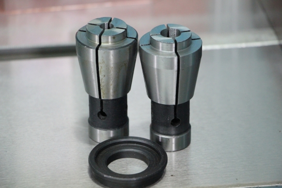 В комплекте со станком идет шпиндель на 30 мм , Для смены фрез предусмотрена фиксация шпинделя. Цанговый патрон со сменными цангами ER 8 мм и 12 мм для использования концевых фрез.