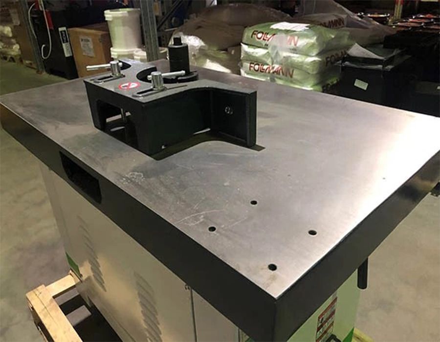 - Литой рабочий стол из серого чугуна усиленный ребрами жесткости.