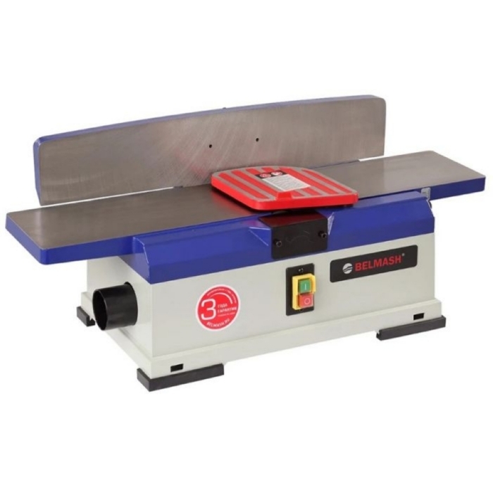 Фуганок J150/730A компактная настольная модель из линейки фуговальных станков Belmash. Коллекторный двигатель мощностью 1250 Вт, который позволяет двухножевому строгальному валу развивать скорость вращения в 10000 оборотов в минуту.
