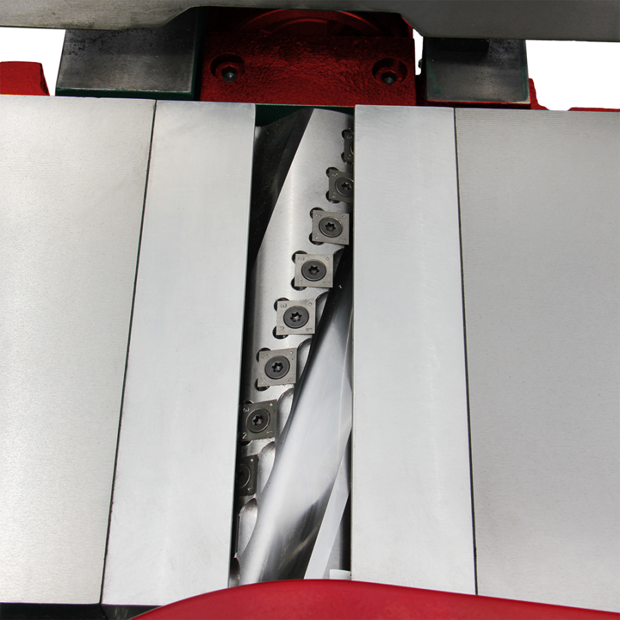 - Уникальный опорный механизм с параллелограммом при подъёме и опускании столов обеспечивает перемещение кромки стола по дуге вокруг режущего вала.