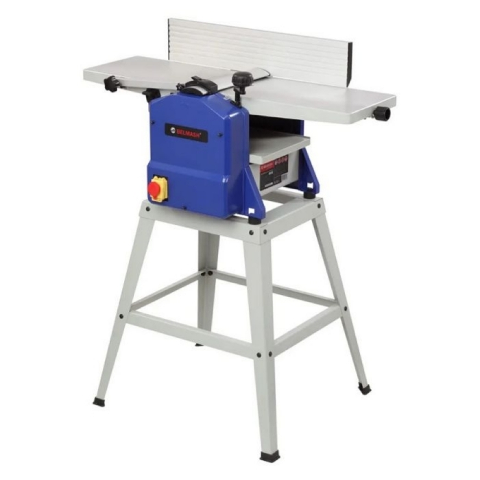 Модель имеет настольное исполнение. Корпус сборный, выполнен из стали. Верхние столы предназначены для строгания/фугования заготовок. Нижний рабочий стол –для рейсмусования. Строгальные и рейсмусовые столы, параллельный упор выполнены из алюминия. Угол наклона упора регулируется. Нужная высота настраивается с помощью рукоятки. Вал оснащен двумя ножами. Удаление отходов резания осуществляется через съемный кожух. Имеется токовая защита.