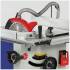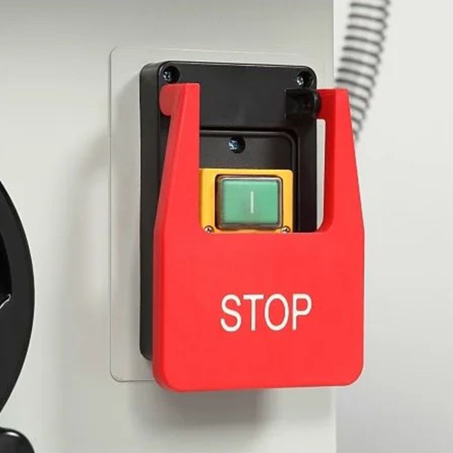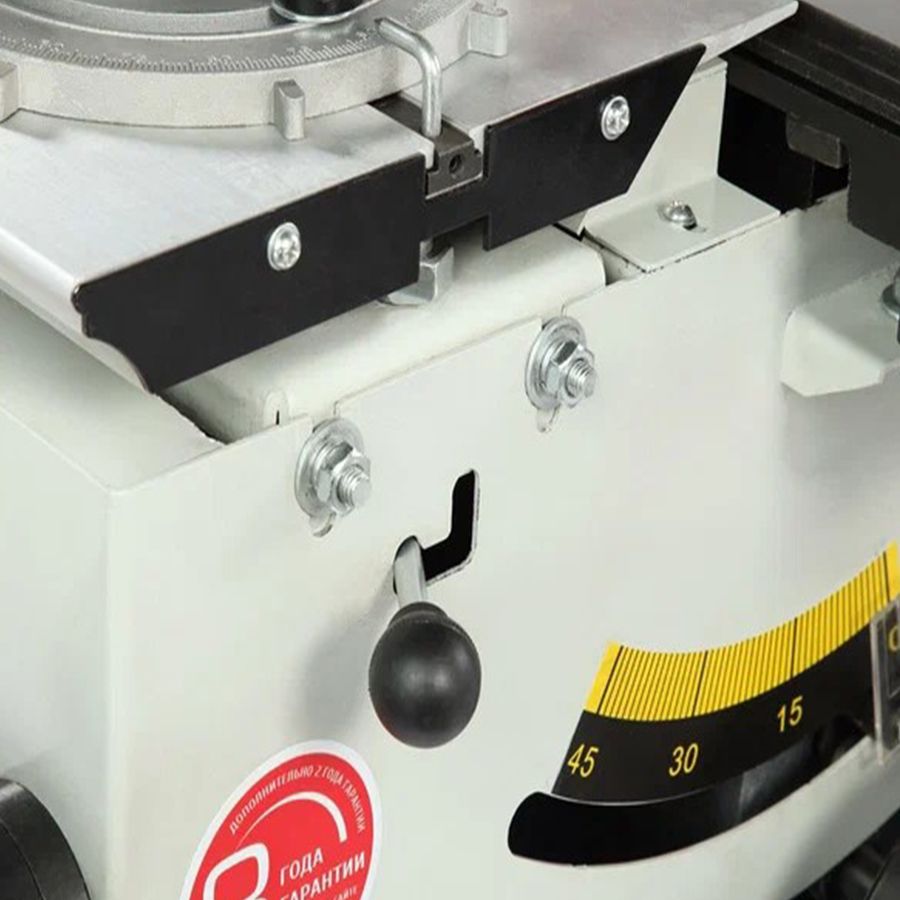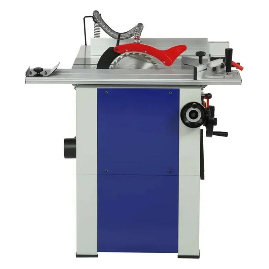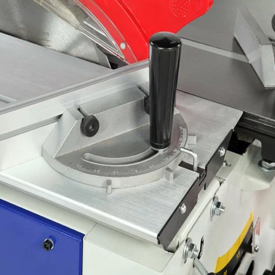 Станок оснащен основным чугунным столом, одним дополнительным столом из листовой стали, подвижным столом из алюминиевого профиля. Основной и подвижный стол имеют по одному стандартному пазу для установки угловых упоров или дополнительных приспособлений. На передней направляющей параллельного упора есть шкала для точной установки.