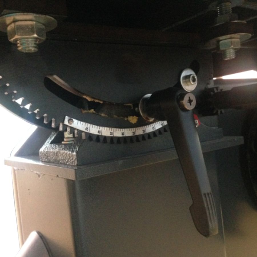 - Литой чугунный стол имеет возможность наклона на 45°.