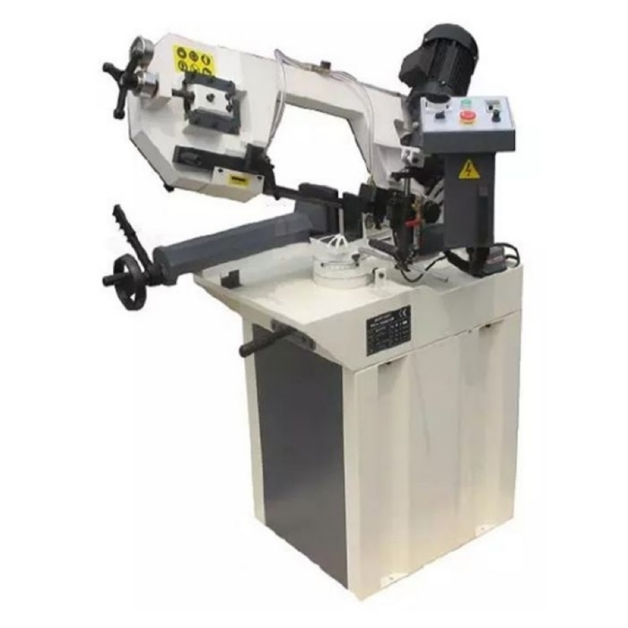 Модель имеет быстрорегулируемые тиски для резки под углом, поворачивается рама, а не заготовка. Тиски с системой быстрого отвода ускоряют процесс смены заготовки (ускоренный отвод подвижной губки происходит без вращения маховика). Зажим заготовки осуществляется тисками вручную, подача заготовки - также вручную. Наличие системы СОЖ в стандартной комплектации – позволяет добиться высокой производительности.
