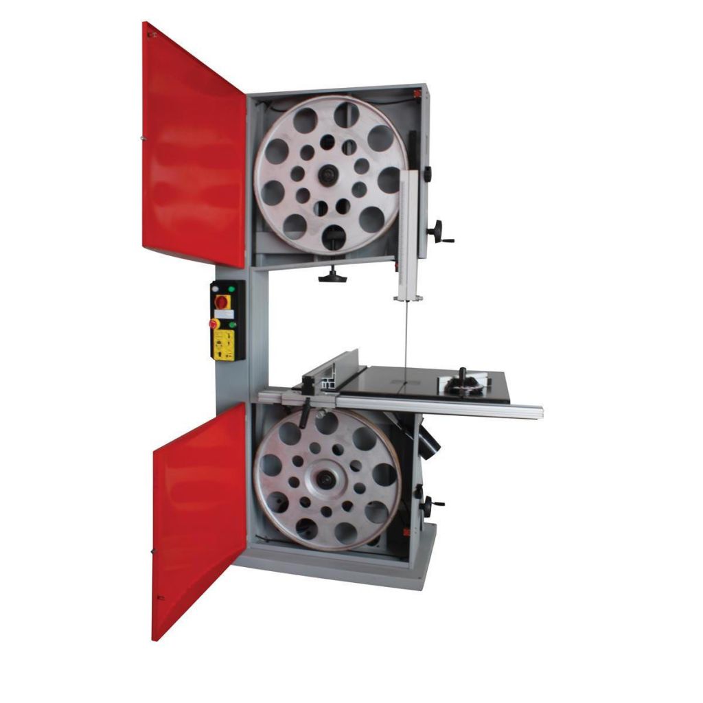 - литые чугунные шкивы с резиновым покрытием на прецизионных подшипниках обеспечивают низкий уровень шума при работе и длительный срок службы пильной ленты
