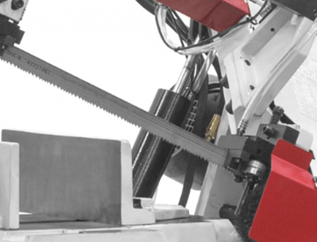 Станок оснащён твёрдосплавными пластинами и подшипниками для точного позиционирования ленточнопильного полотна