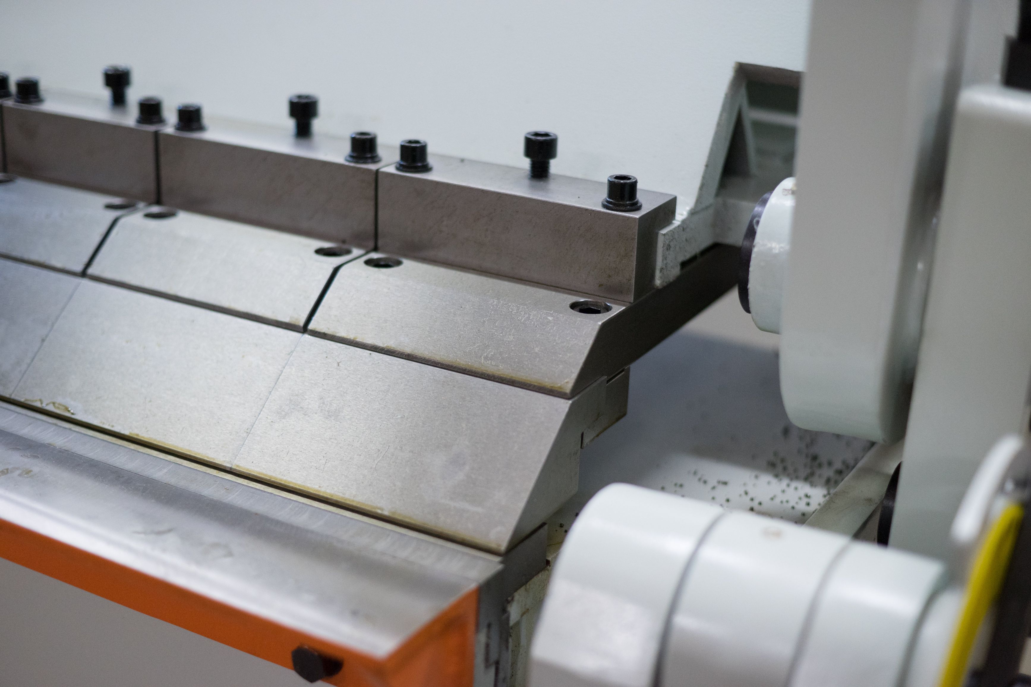 - Верхняя прижимная балка является сегментной, сегменты произведены из специальной закаленной стали - данная особенность станка позволяет работать с широкими и сложными профилями, таких как короба, поддоны и аналогичные конструкции.