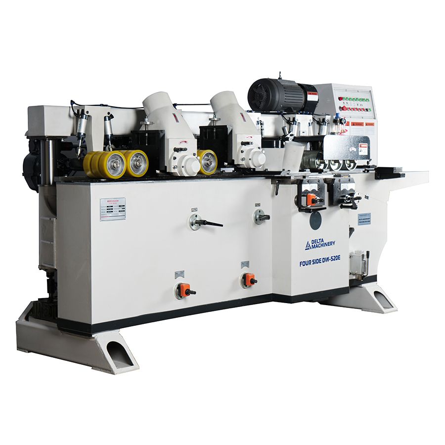 Станок строгальный четырехсторонний пятишпиндельный DELTAMACHINERY FOUR SIDE DW-520H открытого типа предназначен для высокоточной четырехсторонней обработки деревянной заготовки с целью получения высококачественных изделий за один проход. После обработки на 4-х сторонних станках отпадает необходимость в последующем шлифовании профилированных и строганных поверхностей.
