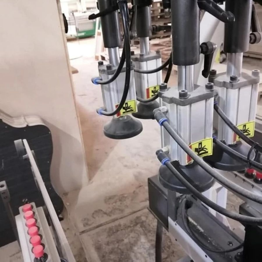 - Перемещение вертикальных сверлильных групп происходит по линейным направляющим, что обеспечивает точность работы.